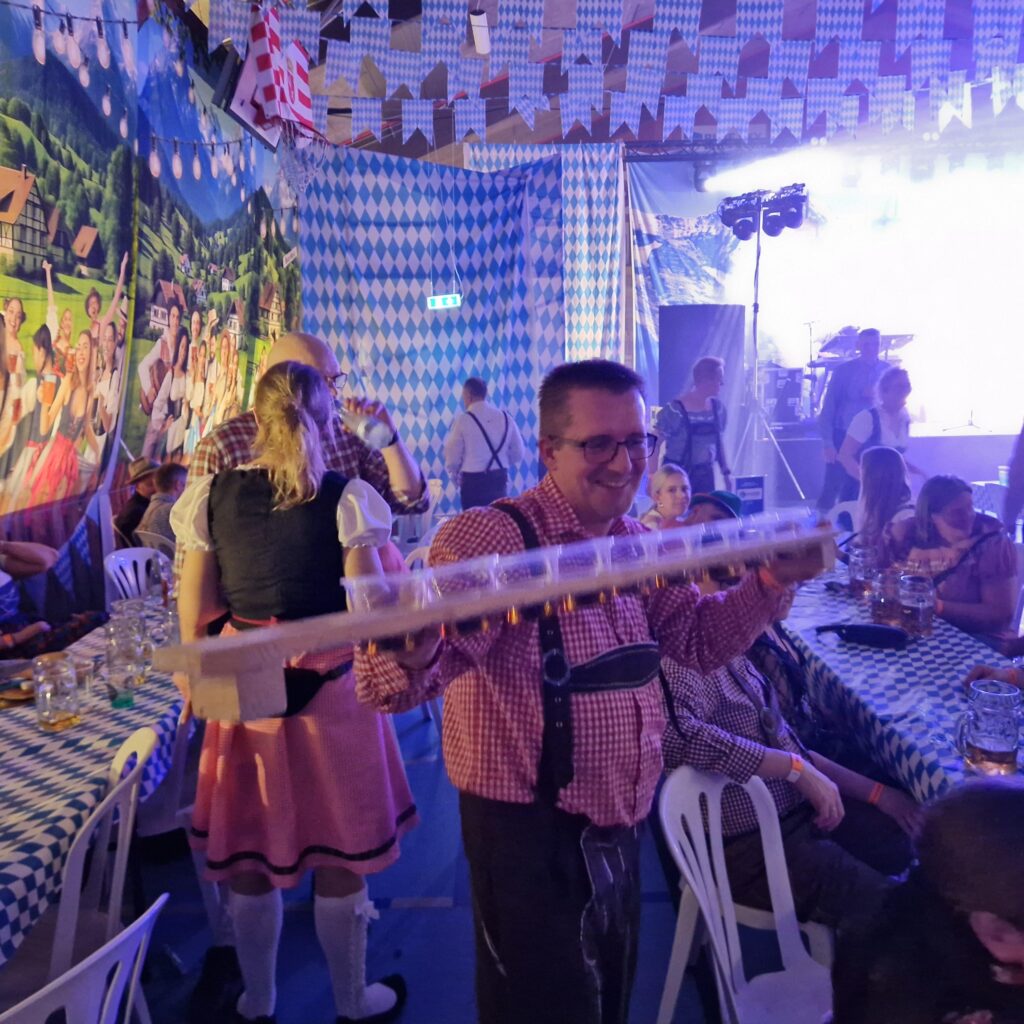 Og når så gæsterne så alle kommer med godt humør, så kan man næsten ikke ønske sig mere. Jeg fik en snak med flere af deltagerne og de gav udtryk for, at bierfesten ligger på et godt tidspunkt. Det er koldt og mørk udenfor, der er lang tid til foråret og det er skønt at rykke en dag ud af kalenderen og så bare feste – der er nok at bekymre sig over i tiden, og når først hallen slår dørene op til bierfest, så glemmer man for en stund alt det triste og giver den gas.