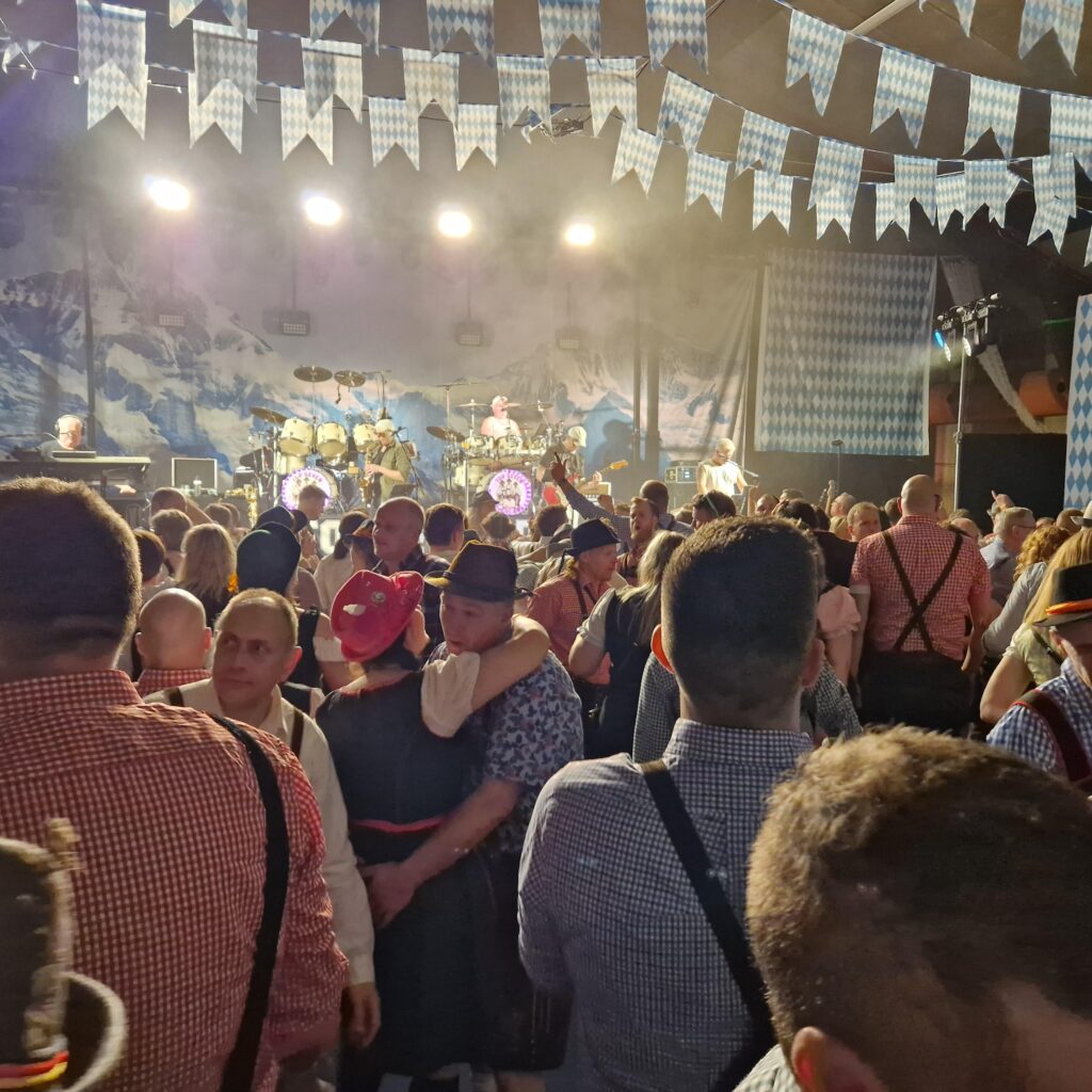 Det er imponerende så mange der har fundet tyrolertøjet frem og det er med til at sætte en helt speciel stemning, når så mange er klædt på til lejligheden, men det så dog ikke ud til at de, der ikke havde taget tyrolertøjet på morede sig mindre end resten. Der var bare god stemning ved bordene i baren og på dansegulvet.
