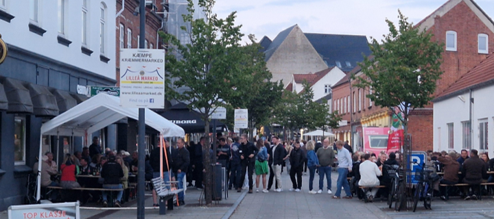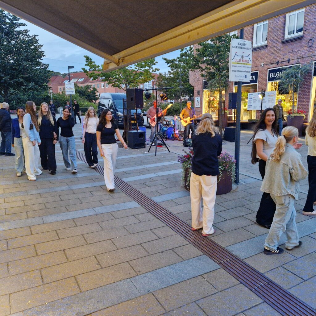 Nede i byen var der stadig masser af menesker. Hadsten Handel havde lavet en flot optakt op til løbet med gode tilbud, musik, smagsprøver og boder og så havde de valgt at have åbent til klokken 22. Da vi kom forbi ved halvti tiden, var der stadig masser af unge foran Åkroen og Centralkroen. For enden af gaden foran Kop & Kande var der godt gang i levende musik. I flere af forretningerne var der også stadig kunder, der lige skulle se på nogle af de gode tilbud inden det hele lukkede ned kl. 22.00.