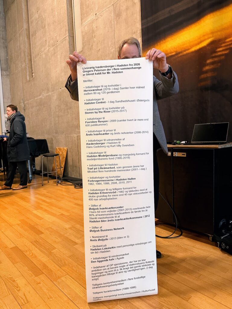 Her til formiddag fik Hadsten endnu en hædersborger, da en kreds af folk fra Hadsten var gået sammen om at indstille ham til den fine titel.