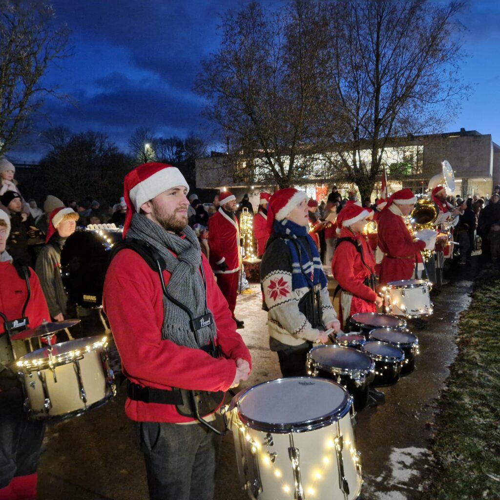 Herefter spillede Hinnerup Garden flere julemelodier, mens der blev uddelt slikposer til børnene. Dem der havde lyst og var modige, kunne få en tur op i højden på brandbilen, med flot udsigt over Hadsten til følge. Toget Futte gav ture i midtbyen, hvilket mange familier benyttede sig af, inden turen gik hjem til fredagshygge.