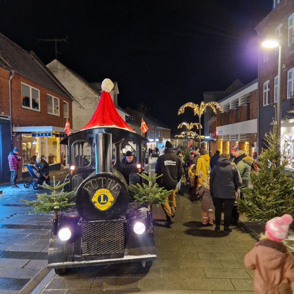 Flot arrangement af Hadsten Handel, der fik god hjælp af Lions Club Hadsten, der stod klar med slikposer samt Toget Futte.