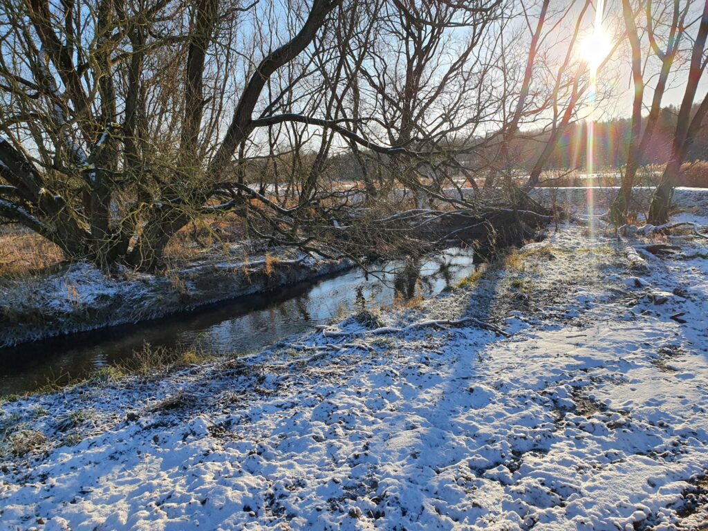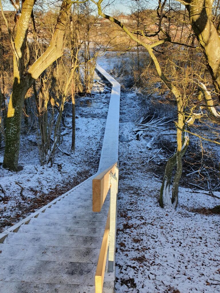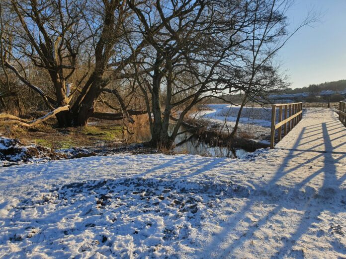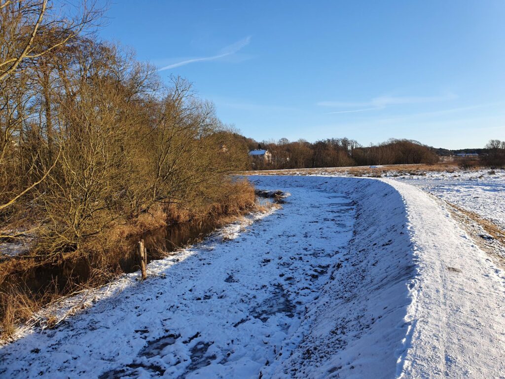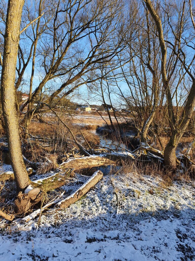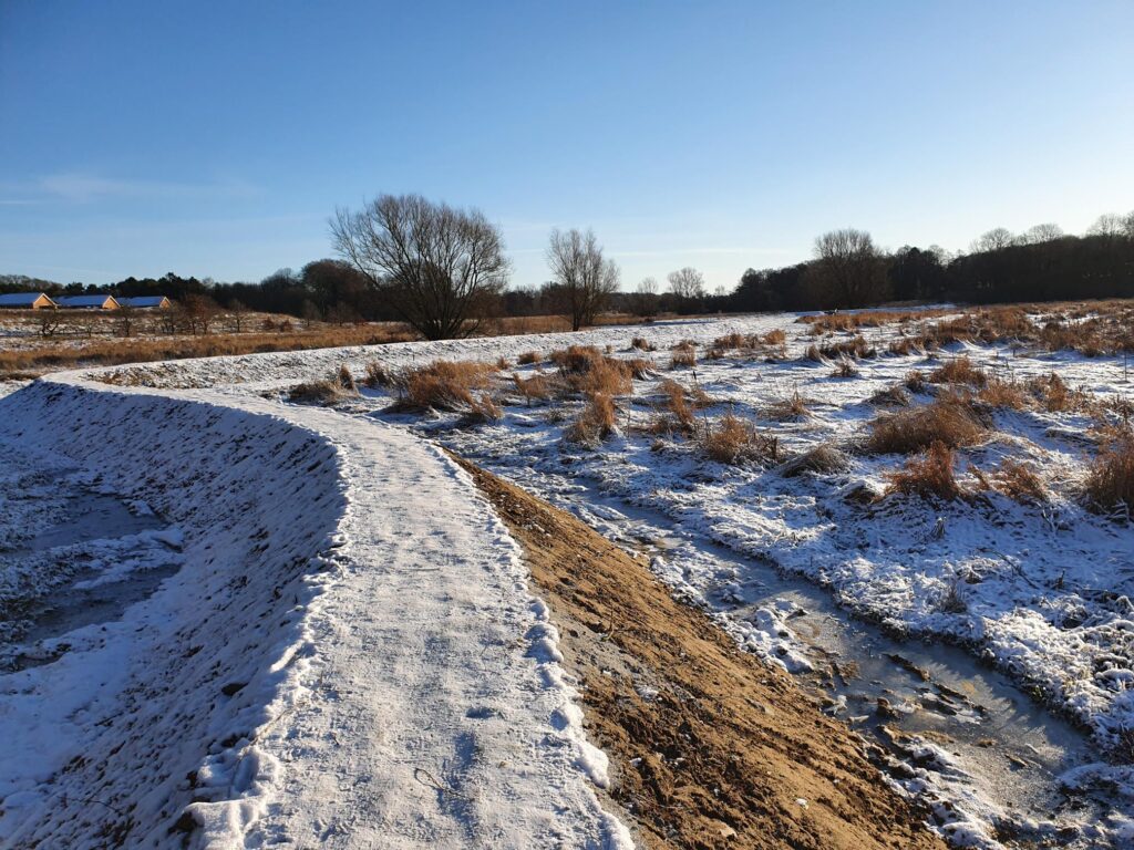 De skal dog ikke snydes for en del af oplevelsen af Hadsten nye attraktion, så her kommer der en biledserie med Kollerup Enge som det tog sig ud i solskin her en dag mellem jul og nytår.