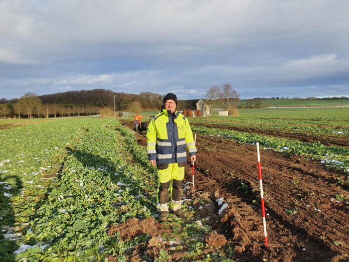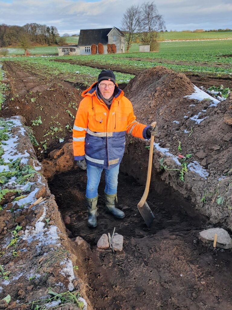 Solen stod højt på den frostklare himmel, da ByensNyt i går var på besøg på Kollerup Mark, hvor der netop er gjort et interessant forhistorisk fund.