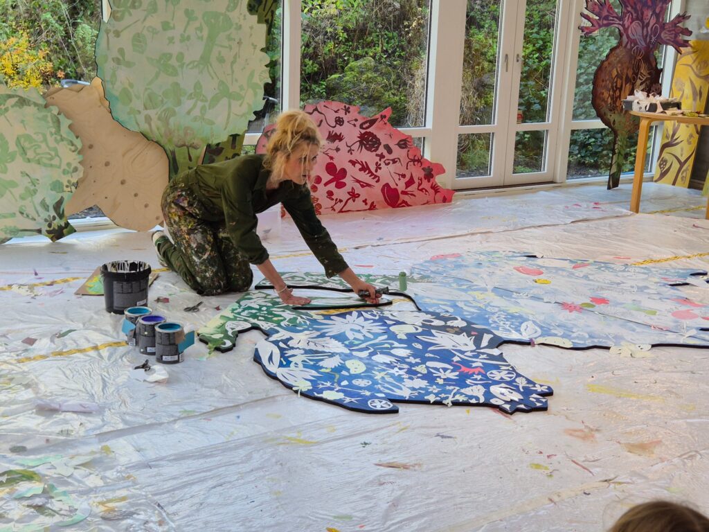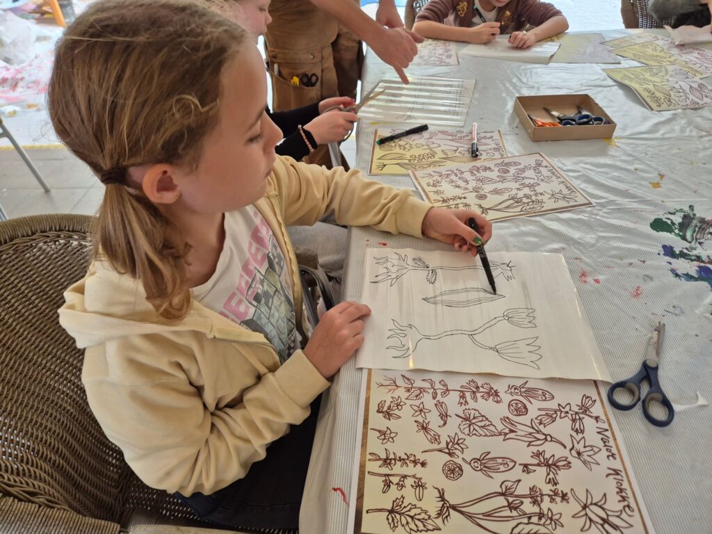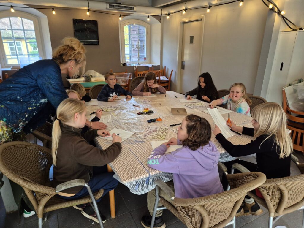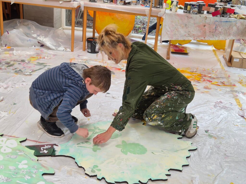 Det store værk kommer til at hedde “Vækst” og her har børnene dekoreret nogle “art-piecs” i udskåret træ, som kunstnerne efterbearbejder i deres værksted, til et samskabende værk, som bliver afsløret ved vores fernisering d 28/2 2026. Her er temaet vilde planter, der i overført betydning er en hyldest til ungdommen og dens vækst.