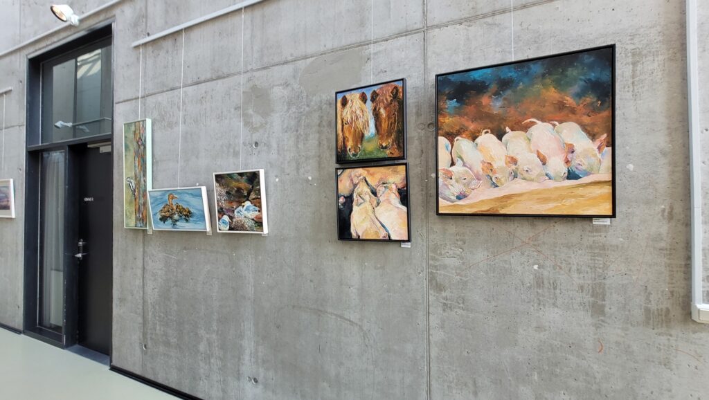 “Det er min mand, Thonnes Stampe Jensen, grafiker, som har sat udstillingen sammen. Han syntes det kunne være spændende, at have en udstilling med tre så forskellige kunstnere – som maler de samme temaer – dyr og fugle. Jeg synes udstillingen er blevet virkelig fin, og Sløjfen og særligt Dorthe Andersen, der er kulturformidler i huset, har været enormt hjælpsomme og entusiatiske omkring udstillingen”, fortæller Susanne Kalmar Hansen til ByensNyt.
