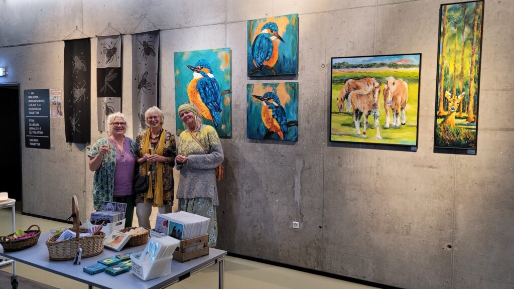 Susanne laver en blanding af akvarel, tegning og akryl, og portrætterer særligt fugle og isbjørne. Den anden kunstner er Tove Møller fra Odder. Tove maler både olie, akryl, akvarel, laver cyantopi og stentryk. Den tredje og sidste kunstner er Ulla Gammelgaard, og hun er oprindeligt fra Sporup, men er nu bosat i Hammershøj. Hun maler udelukkende med olie og spartel.
