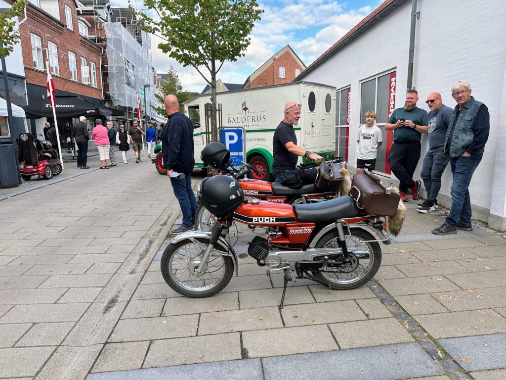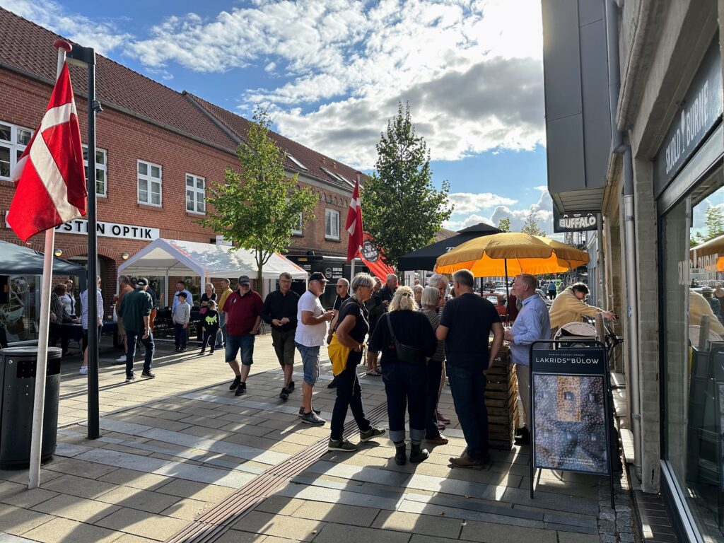 Det lokkede mange ned i midtbyen, hvor der ventede dem flotte køretøjer, lige fra biler, til knallerter og en ombygget havetraktor. Her ud over var der livemusik og foodtruck ved Hadsten Optik, der fejrede Mette Rasmussens 20 års jubilæum, der var vinsmagning ved Skjold Burne, Lindegaardens flotte kaffevogn samt hoppeborge og guldgravning for børn.