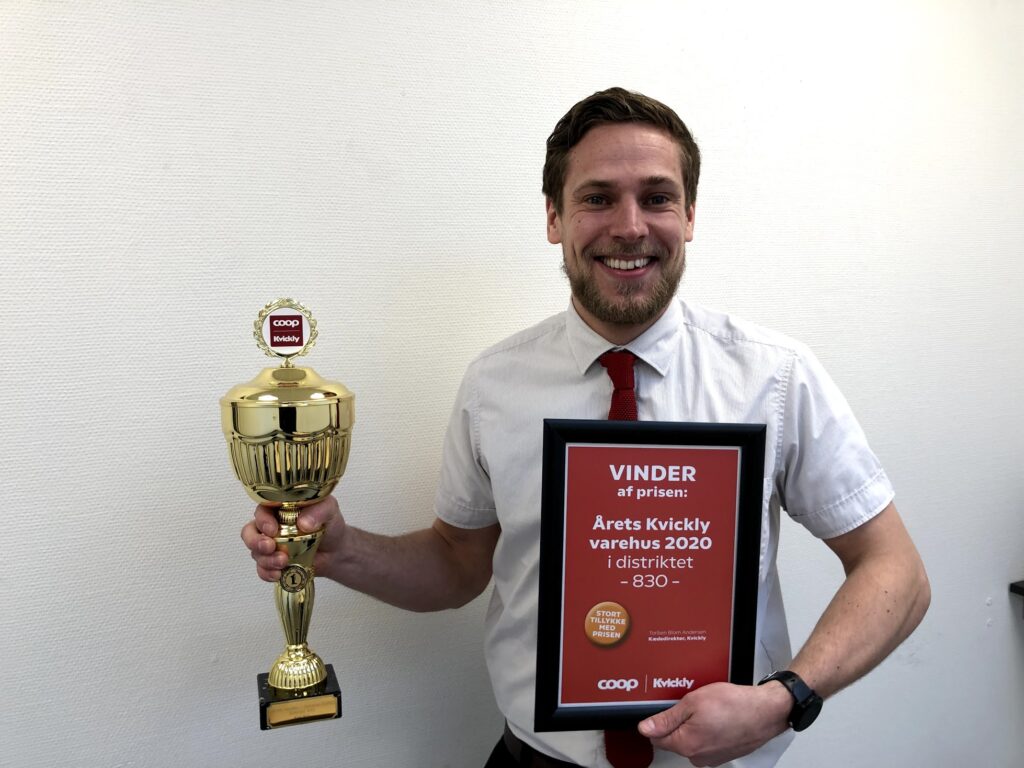 “Det er da virkelig en cadeau til butikken, men især til personalet, der i den grad fortjener al den ros de kan få. De har gjort det godt, og uden dem, så gik det jo ikke. Når det igen er muligt, skal vi holde en stor fest for personalet, hvor Thomas Rolighed (den tidligere varehuschef, red) der jo også har en stor andel i prisen, har lovet at komme, og agere bartender, så det kunne ikke være bedre”, kommer det storsmilende fra Mads, da ByensNyt er forbi Kvickly Hadsten, for at høre lidt med omkring den flotte pris.