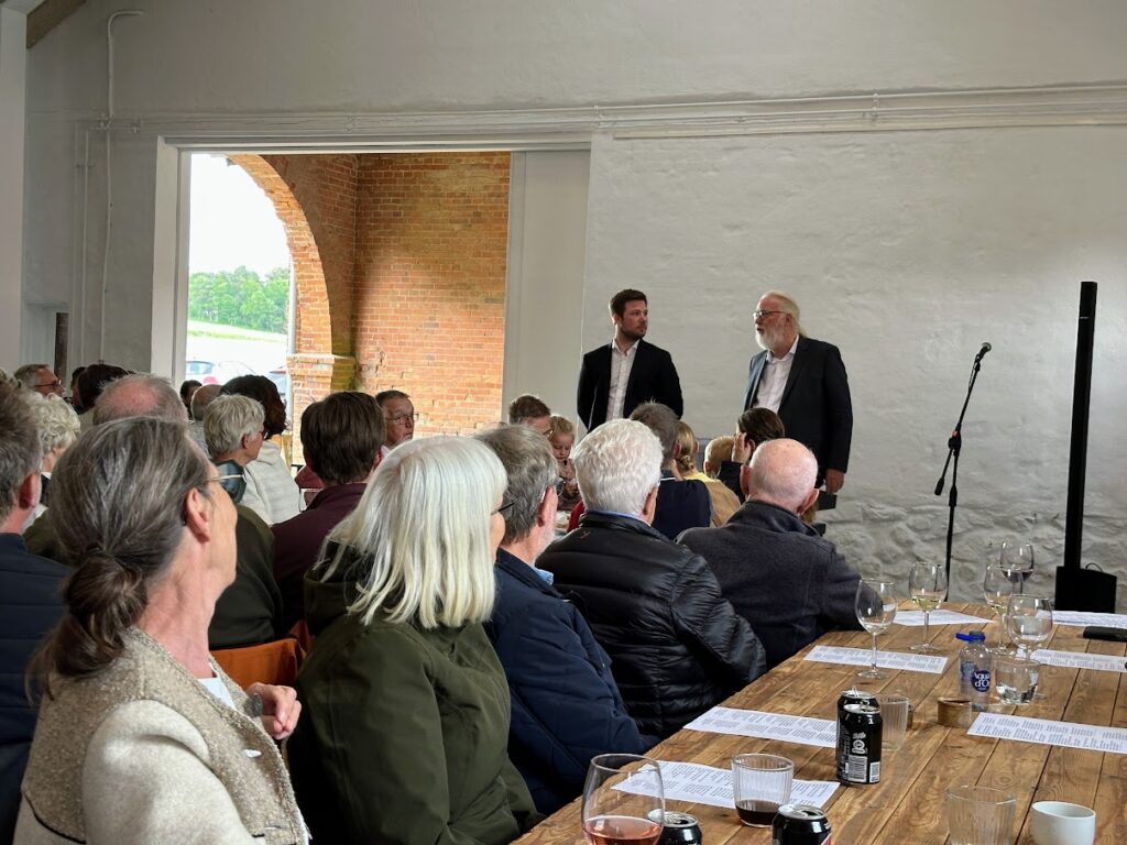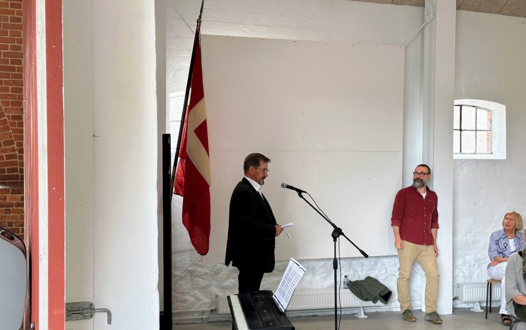 Efter en fin tale og velkomst fra Niels Christian Selchau-Mark, godsejer og byrådsmedlem, overtog Jesper og Hans Christian Brun-Jensen scenen. Far og søn, hvor far gennem mange år har været operasnager, blandt andet ved Den Jyske Opera, mens Hans Christian går på Musikkonservatoriet. De gav en god halv times sang og musik, til stor begejstring, og da de sluttede af med “O sole Mio”, med Hans Christian som solist, så var taget næsten ved at lette.