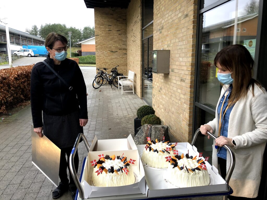 “Vi synes bare, at det er så godt, at vaccinen nu er kommet, og det vil vi gerne bakke op om, og det gør vi så ved at give lagkage til Møllegården. Nu er der forhåbentlig lysere tider på vej, og det kan beboerne så fejre med lagkage i dag. Det er den helt klassiske lagkage, som vores konditorer har lavet, så der skulle være god chance for, at den falder i god jord hos beboerne”, fortæller Anette og Kathrine til ByensNyt.dk.