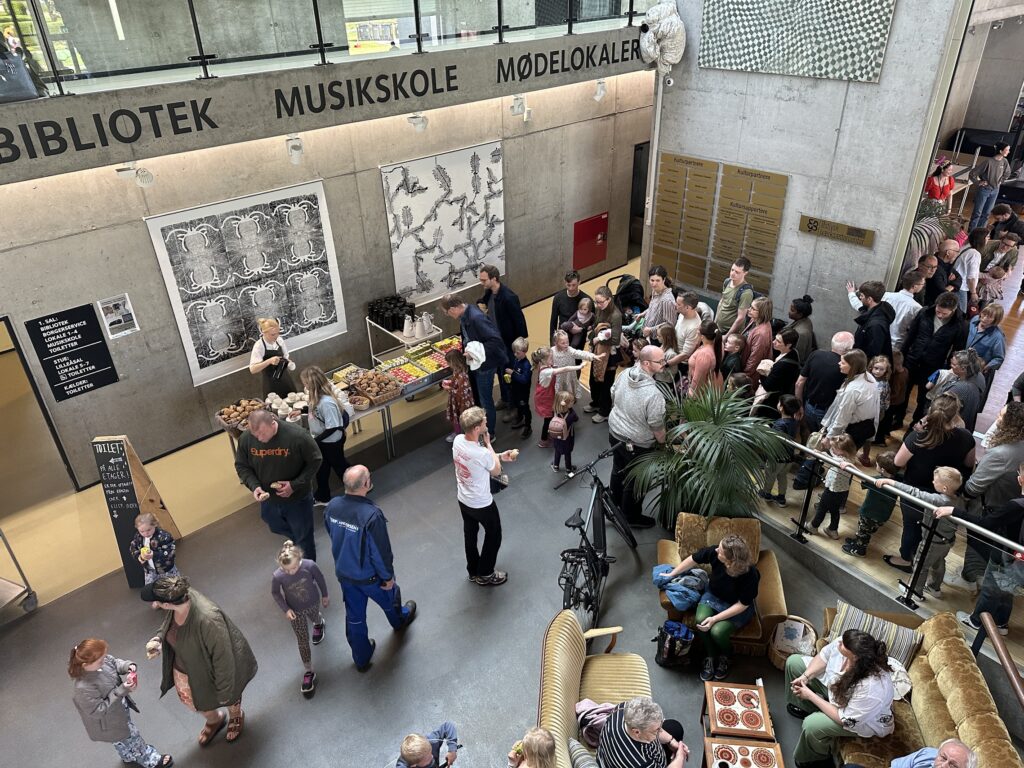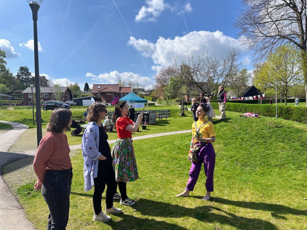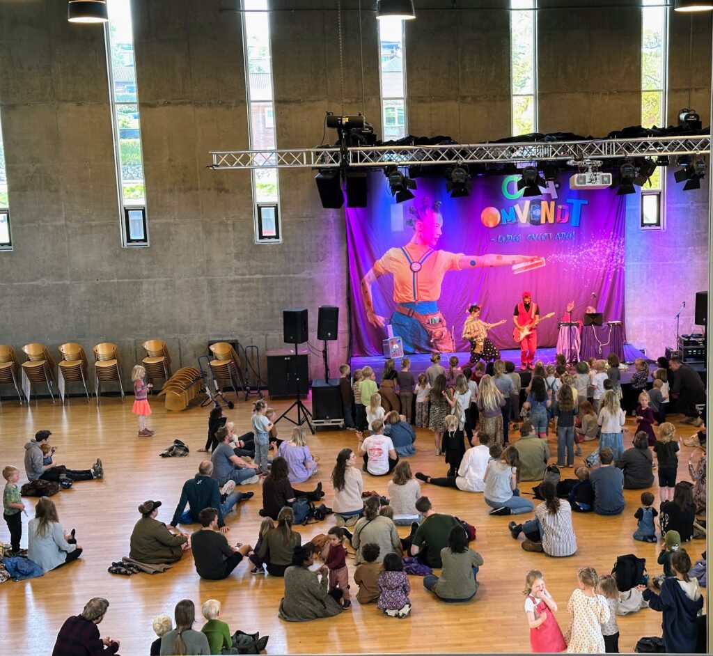 Der var masser af aktivitet, både ude og inde, da ByensNyts klimareporter dukkede op til Sløjfen. Oda Omvendt, kendt fra DR, især blandt børn og deres forældre, var netop i gang med sit sidste nummer på scenen i Lilleåsalen da jeg ankom, og det var en energisk og god start på besøget.