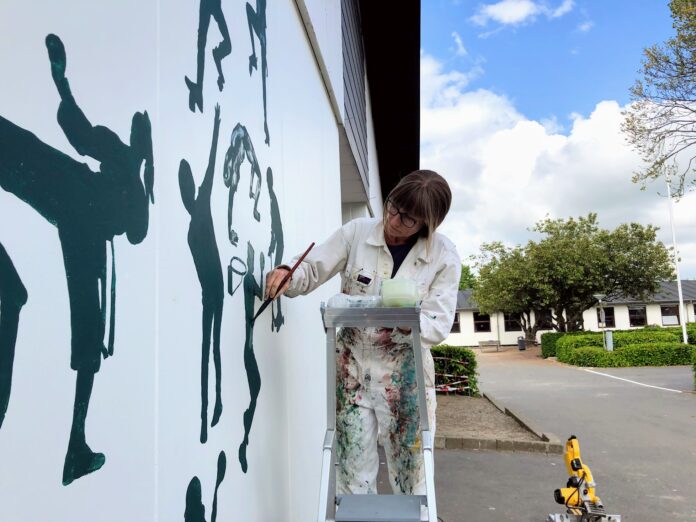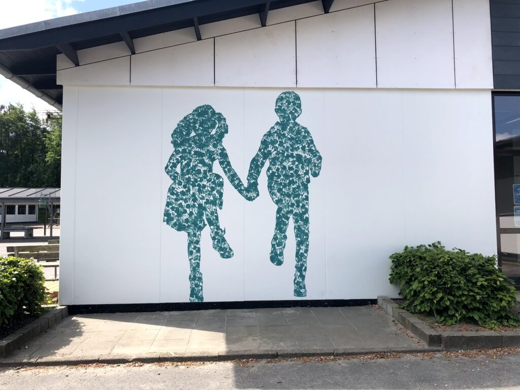 “Det har været et rigtigt spændende projekt, hvor eleverne har været involveret på mange forskellige måder, både med idéer og selve udførelsen af værkerne. Vi har fået lavet en nye version af skolens logo, hvor eleverne i de små klasser hver især, har sat deres håndtryk, så de tilsammen udgør pigen og drengen, mens mellemtrin og udskolingen har bidraget på andre måder. Vi forsøger at vise, hvad der sker bag murene på skolen og vise hvilke værdier skolen repræsenterer”, fortæller Lise Eiler til ByensNyt, der var forbi skolen for at se den flotte udsmykning.