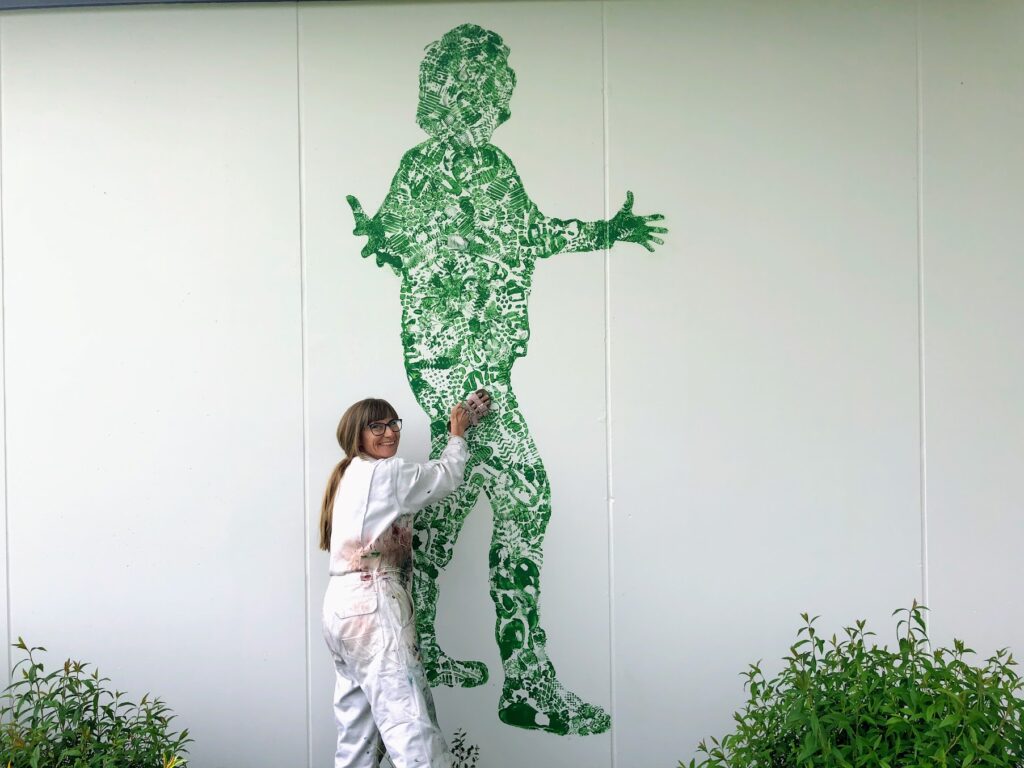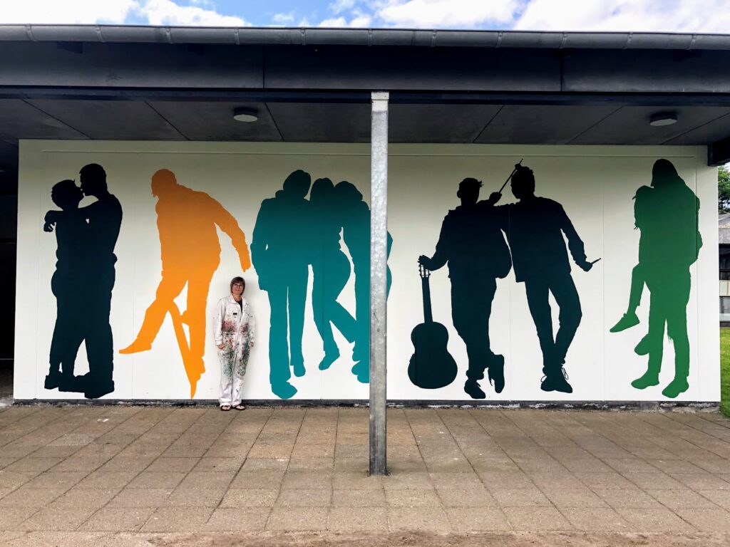 Det er kunstneren Lise Eiler der står for udførelsen af kunstværket, men eleverne har medvirket på mange forskellige måder, og har derfor en stor andel i de flotte silhuetter, der nu pryder skolens facade.