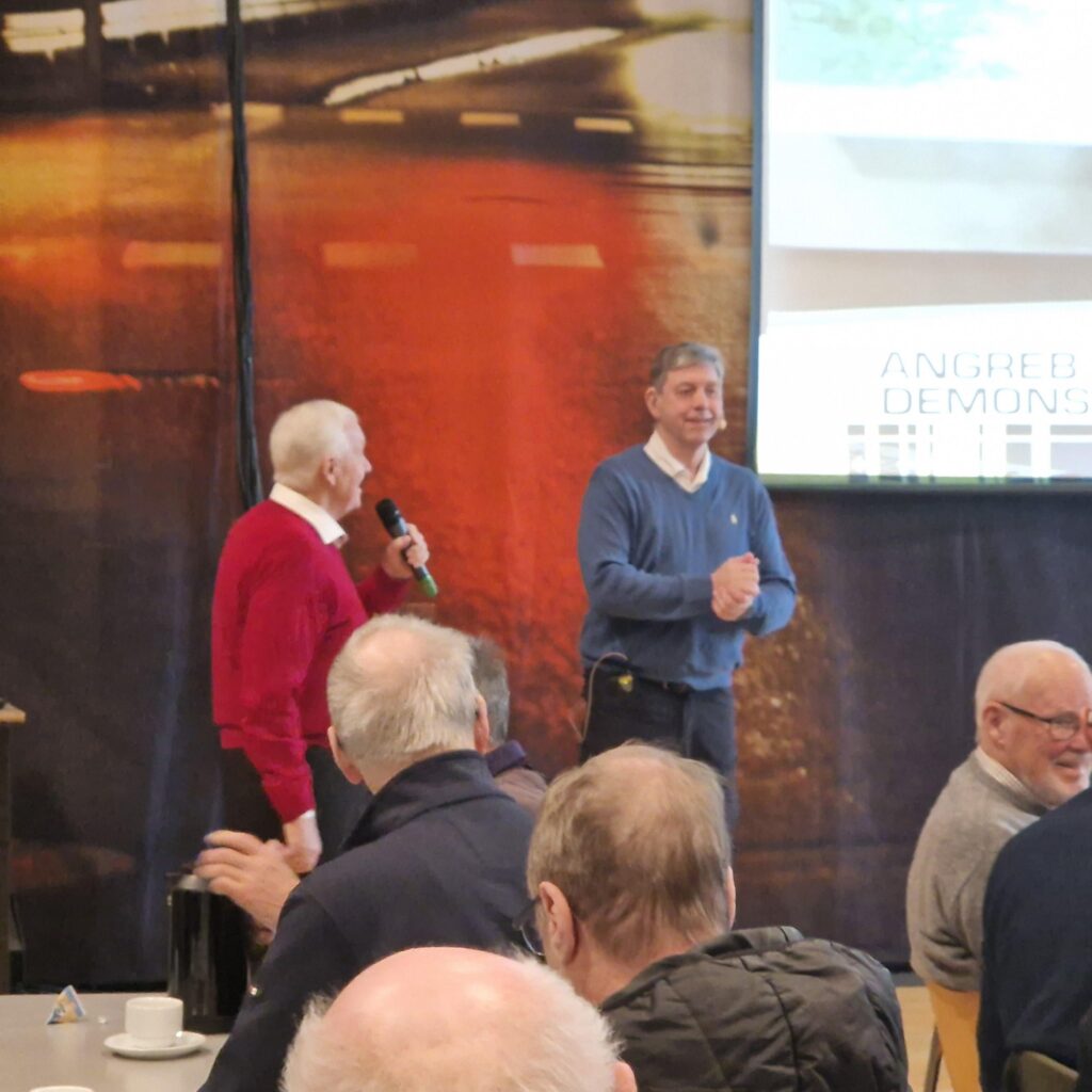 Det blev til en spændende og underholdende halvanden time med Jens Betjent. Han havde masser af sjove og interessante perspektiver og anekdoter og mon ikke han i dag er savnet i politistyrken. Jens rundede af med enkelte spørgsmål fra salen, indtil mødet pludseligt blev afbrudt, da en kreds af borgere havde indstiftet mødeleder Gregers Petersen til titlen som hædersborger i Hadsten. En afbrydelse, der naturligvis var afstemt med Jens Betjent, som derfor var det eneste i salen, der ikke var overrasket over afbrydelsen. Den episode kan du læse om her: Gregers Petersen hædersborger i Hadsten.