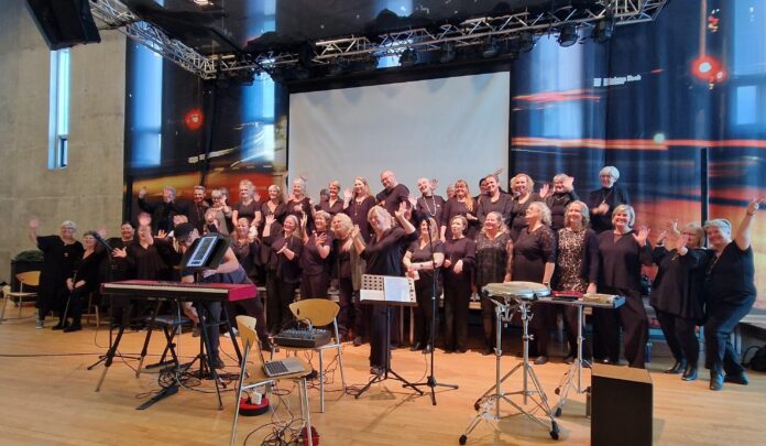 De to kor som stod samlet på scenen mødte frem med masser af humør og sangglæde og de to korledere akkompagnerede på tangenter og percussion, så det til tider lød som et helt orkester.