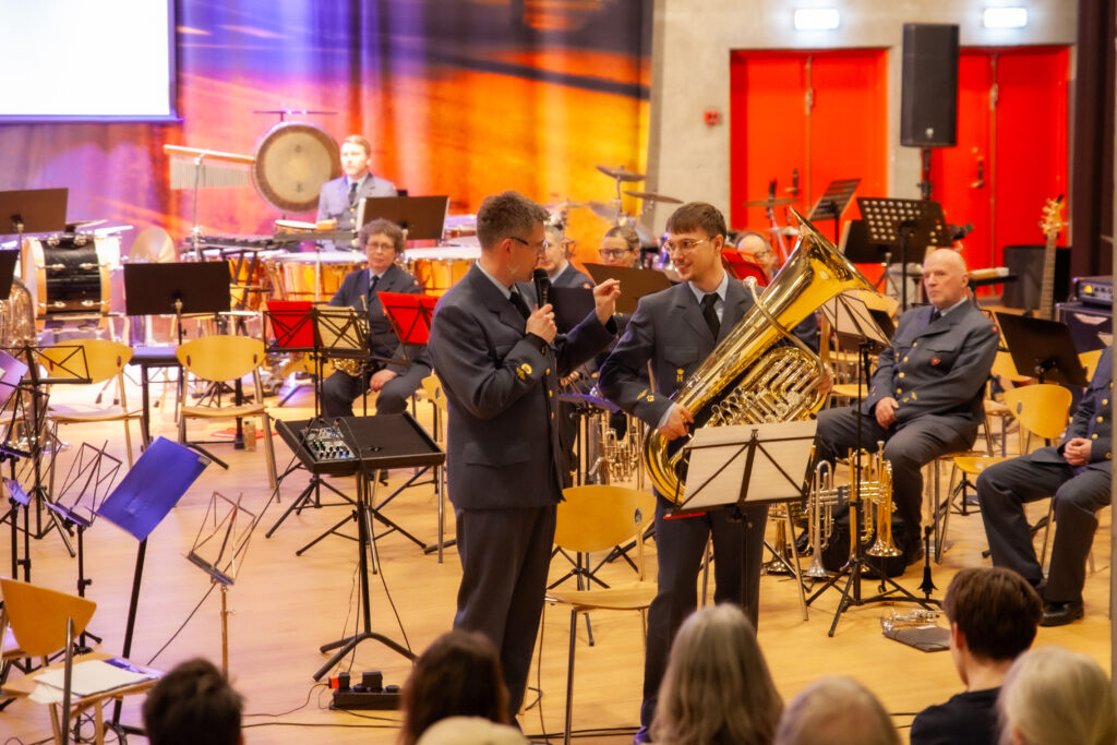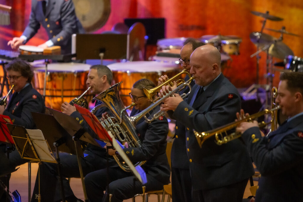 Først stod den på country-western musik, og selvom, som orkesterleder Gert Hattesen udtrykte det, at USA måske ikke er det mest populære land lige nu, set med danske briller, så kan man jo ikke tage fra dem, at der er kommer meget god musik derfra. Derfor blev det til et par numre fra “over there”, inden det store publikum fik et klassisk potpourri, efterfulgt af Dronning Magrethes Parademarch. Herefter fik vi noget så særligt som et solonummer på tuba fra orkesterets spanske musiker, inden der blev rundet af med et par numre i latin-genren, nøj, hvor det swingede. En halv time, der i den grad fik smilene frem og hænder og fødder til at bevæge sig hos publikum, som var repræsenteret i alle aldre denne aften.