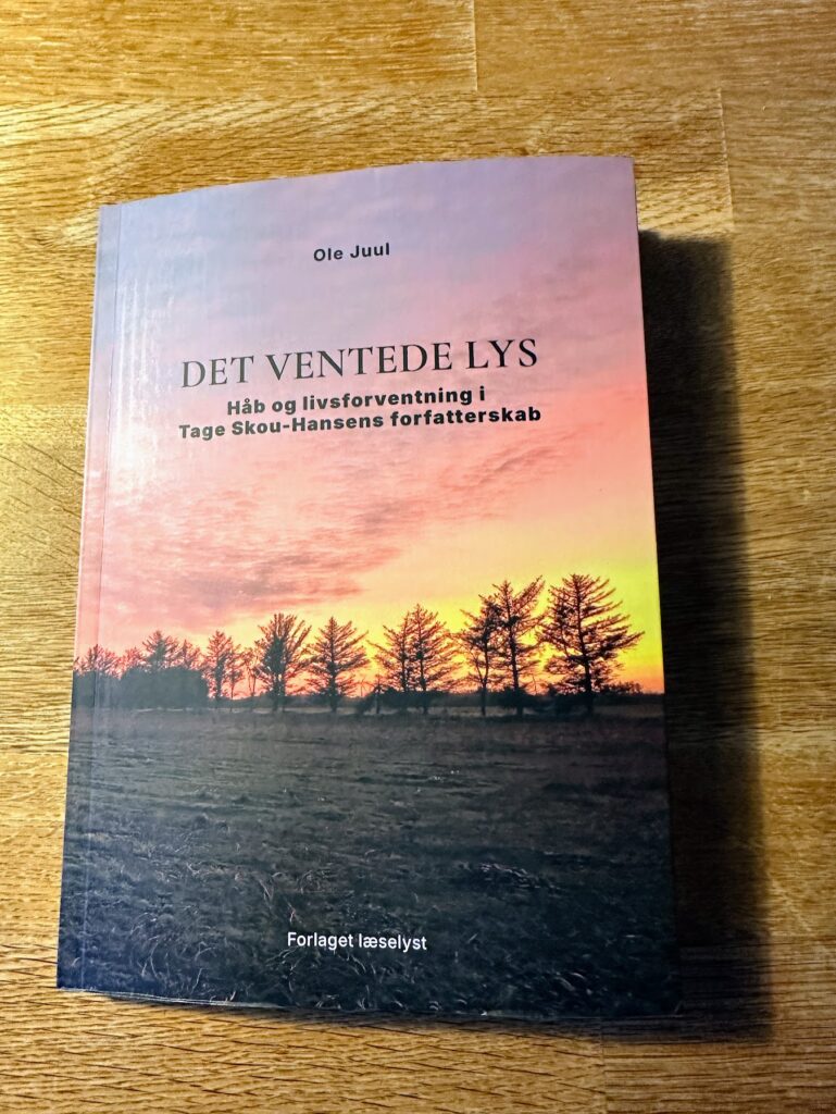 Bogen, der udkommer i dag, 16. januar, på Forlaget Læselyst, omhandler Tage Skou-Hansens forfatterskab, med særligt fokus på forfatterens romanserie om Holger Mikkelsen. Det er 11. bog i Ole Juuls forfatterskab, og bogen har fået titlen “Det ventede lys” med undertitlen “Håb og livsforventning i Tage Skou-Hansens forfatterskab.
