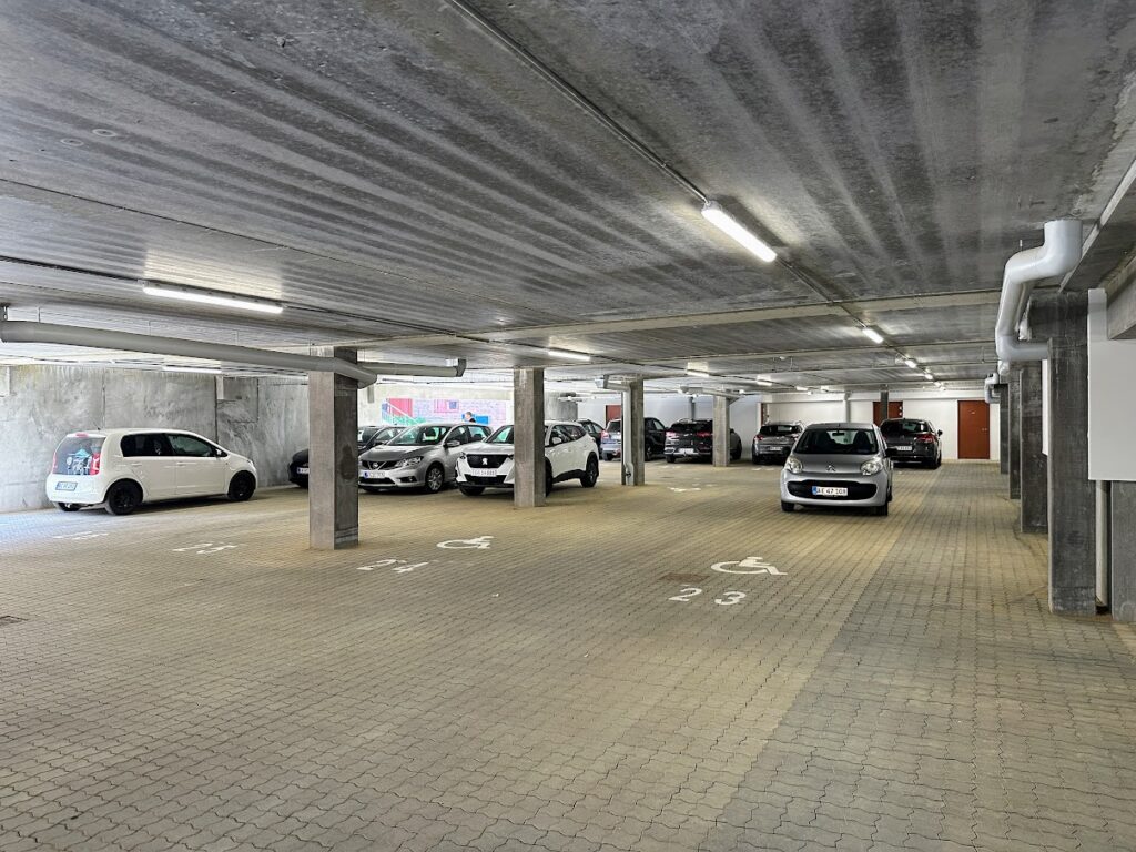 Ud over de 75 lejligheder, er der også et fælleshus, hvor der bliver lavet to gæsteværelser, som man kan leje til en særdeles favorabel pris, hvis man får overnattende gæster. Herudover er der 61 parkeringspladser tilknyttet det store lejlighedskompleks samt to tagterrasser og et hyggeligt gårdmiljø med borde og bænke.