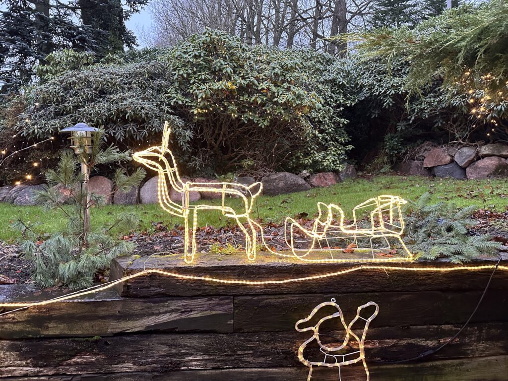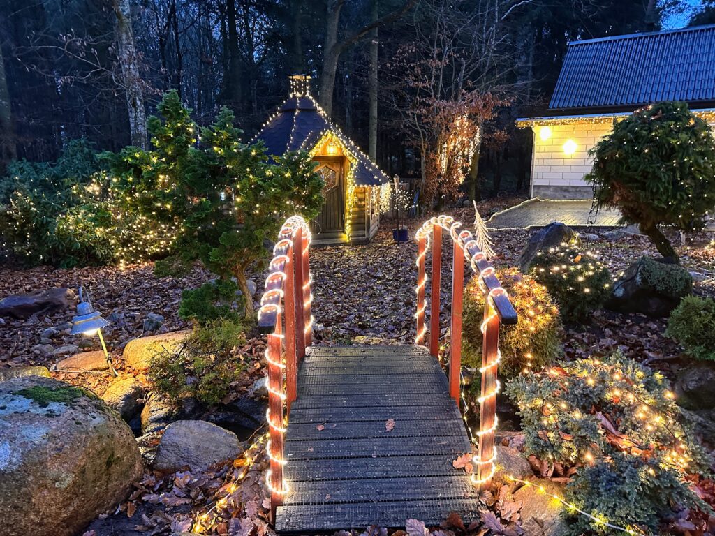 “Jeg har brugt alle aftener samt weekender på det, fordi om dagen arbejder jeg jo på gartneriet, så det tager lidt tid. Vi tænder det hele den 20. november, hvor jeg har fødselsdag, og så kommer både børn og børnebørn til en hyggelig stund”.