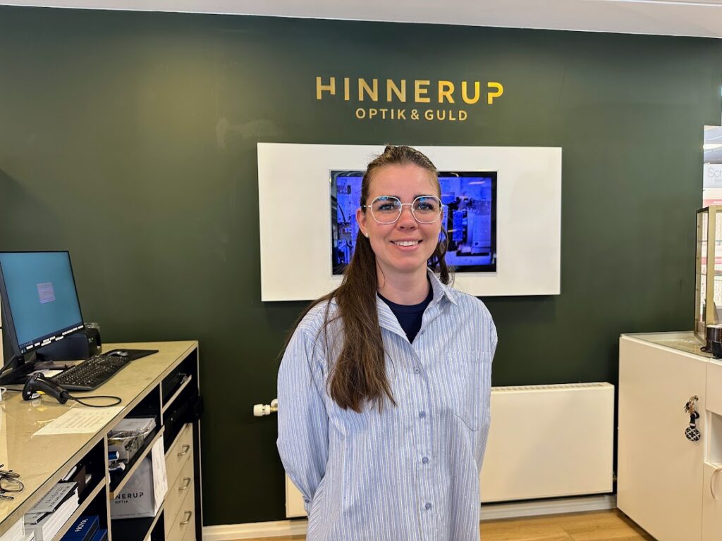 “Jeg kender jo rigtigt mange af vores kunder qua at jeg har boet i Søften hele mit liv, så det føles lidt som at komme hjem, hvilket er dejligt, og så er det nogle skønne kollegaer jeg har fået. Samtidig har jeg lært at skifte batteri på et ur, en lænke i et smykke og lave hul i ørene, og det kan jeg egentlig meget godt lide. Jeg elsker at være optiker, men at kunne lidt mere, det gør da bestemt ikke noget, og det gør også, at arbejdsdagen bliver endnu mere varierende med mange forskellige kunder og opgaver”.