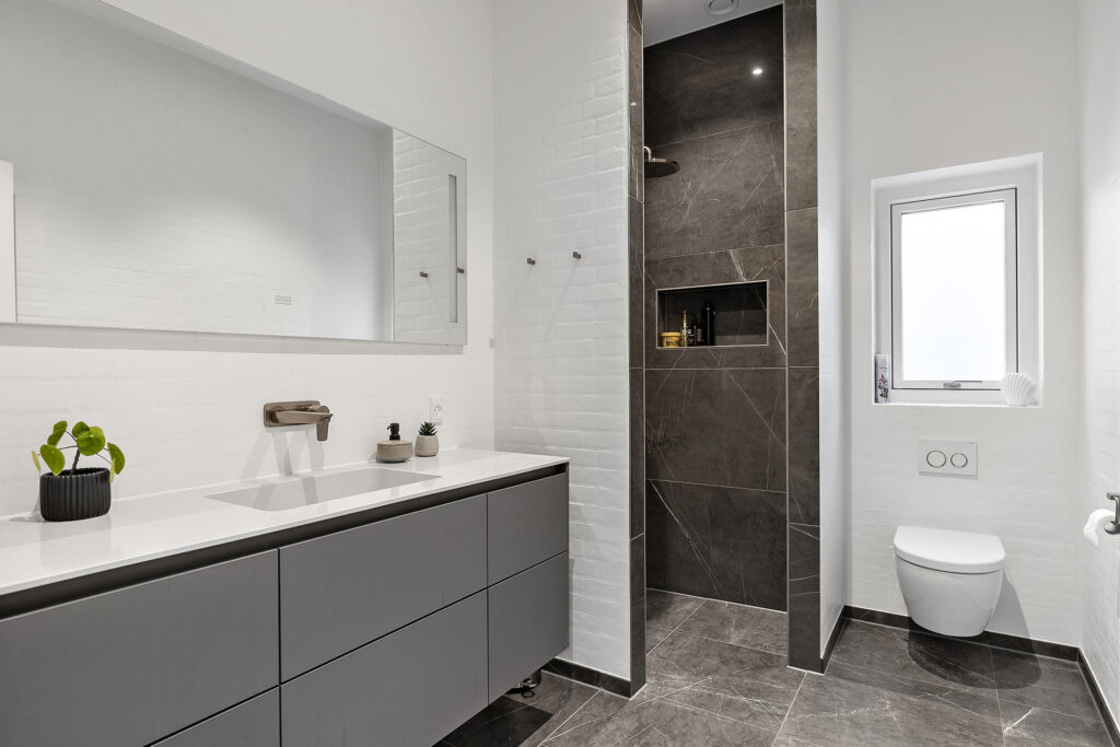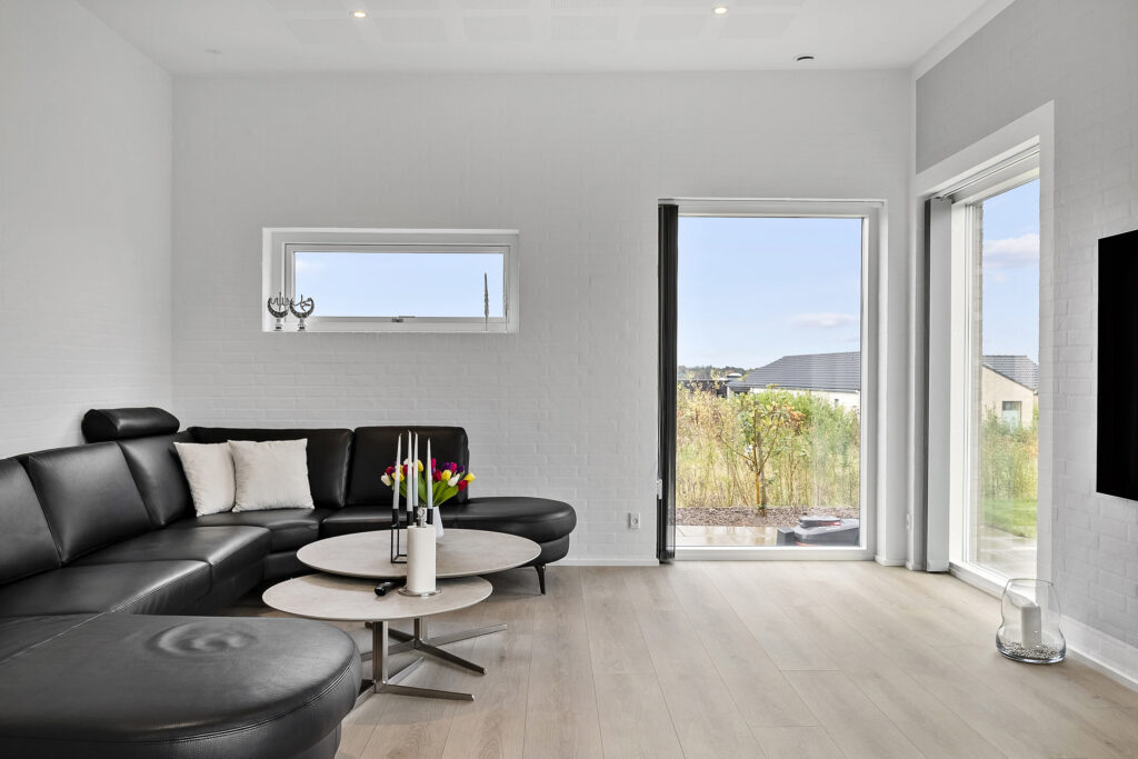 Velkommen til Bjergegårdsvej 93. Denne bolig, opført i 2023 af Preben Jørgensen Huse, er et strålende eksempel på, hvordan moderne design, funktionalitet og høj kvalitet kan forenes. Materialerne, der er valgt til byggeriet, er af højeste standard og adskiller sig markant. Den fuldmurede konstruktion og de høje lofter skaber en rummelig og luksuriøs atmosfære, som forstærkes af det generøse lysindfald.