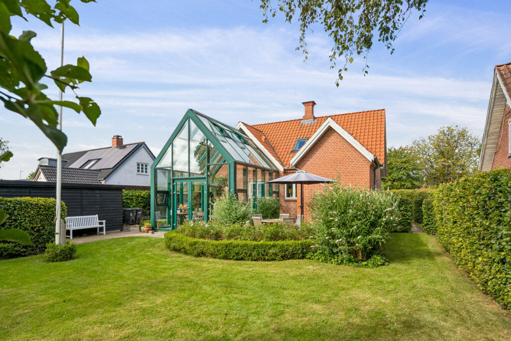Grunden lyder nemlig på lige knap 1.000 kvadratmeter og er fantastisk anlagt med køkkenhave, et karakteristisk orangeri og masser af hyggekroge. Her kan I sidde i solen i timevis, trække ind i skyggen og sætte jer ud i solen igen. I kan hente æg fra hjemmegående høns, så og høste alverdens grøntsager, lave aftensmad over bål og lægge jer til at sove ude under ben himmel når dagen går på hæld. Med andre ord er dette en have, der er skabt til at leve i.