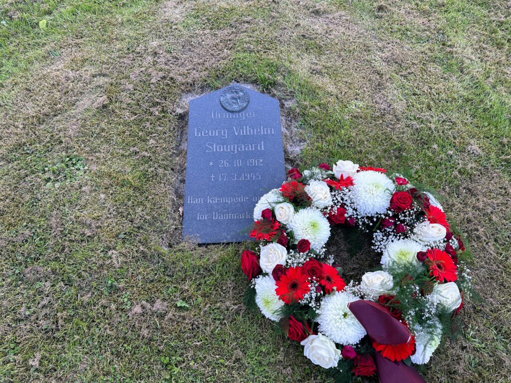 Her deltog Hjemmeværnskompagni Favrskov også, der nedlagde en smuk krans efter gudstjenesten ved Georg Vilhelm Jørgen Stougaards mindesten. Han var frihedskæmper, født og opvokset i Hammel, og blev henrettet i København i slutningen af 2. verdenskrig.