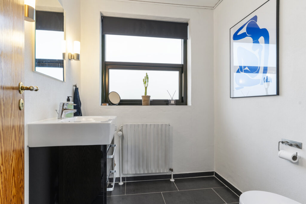 Husets værelser fremstår velholdte og passer naturligt ind i dagligdagens behov for ro og opbevaring. Planløsningen tilgodeser familien med tre værelser, mens et rummeligt badeværelse med både badekar og separat bruseniche skaber ekstra komfort. Til huset hører også et gæstetoilet, der gør hverdagen praktisk, især når huset er fyldt med liv.