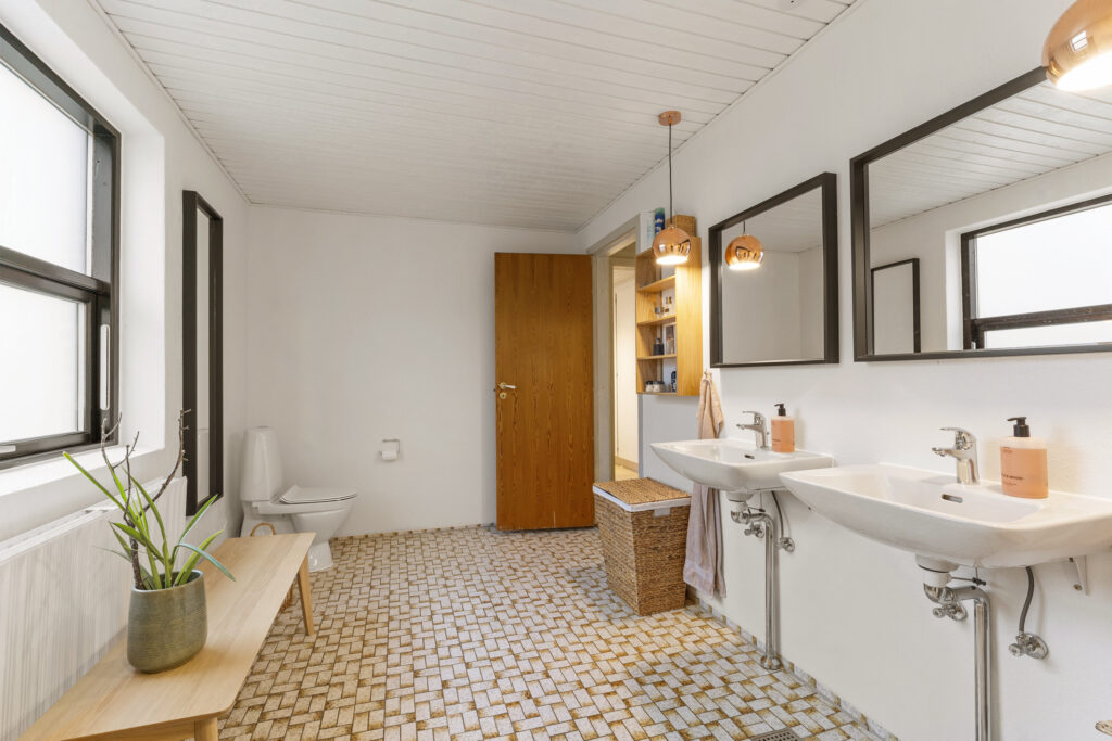 Bryggerset tilbyder en funktionel løsning til børnefamilier – her kan sko og overtøj finde plads, eller vasketøjet klares uden at belaste andre rum. Ude venter en skøn have med hyggelige terrasser og legeområder. Her får du grønne rammer om ude livet, hvor børnene kan lege frit, og du kan trække dig tilbage med en kop kaffe eller samle familie og venner til gode stunder.