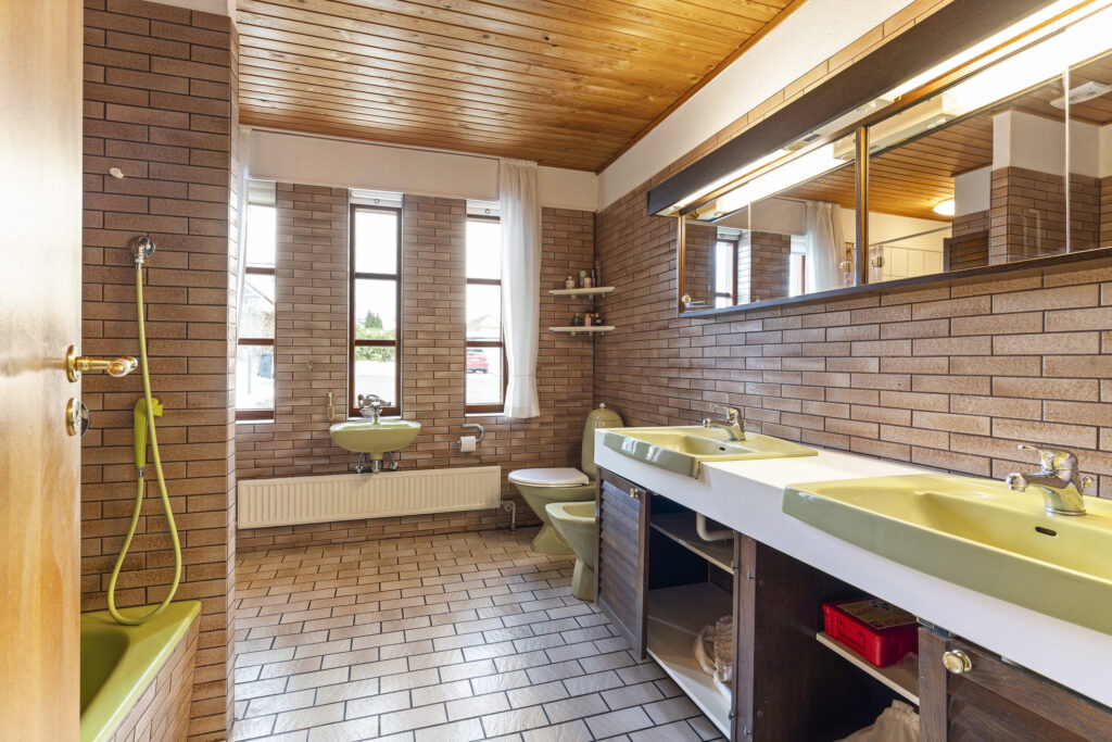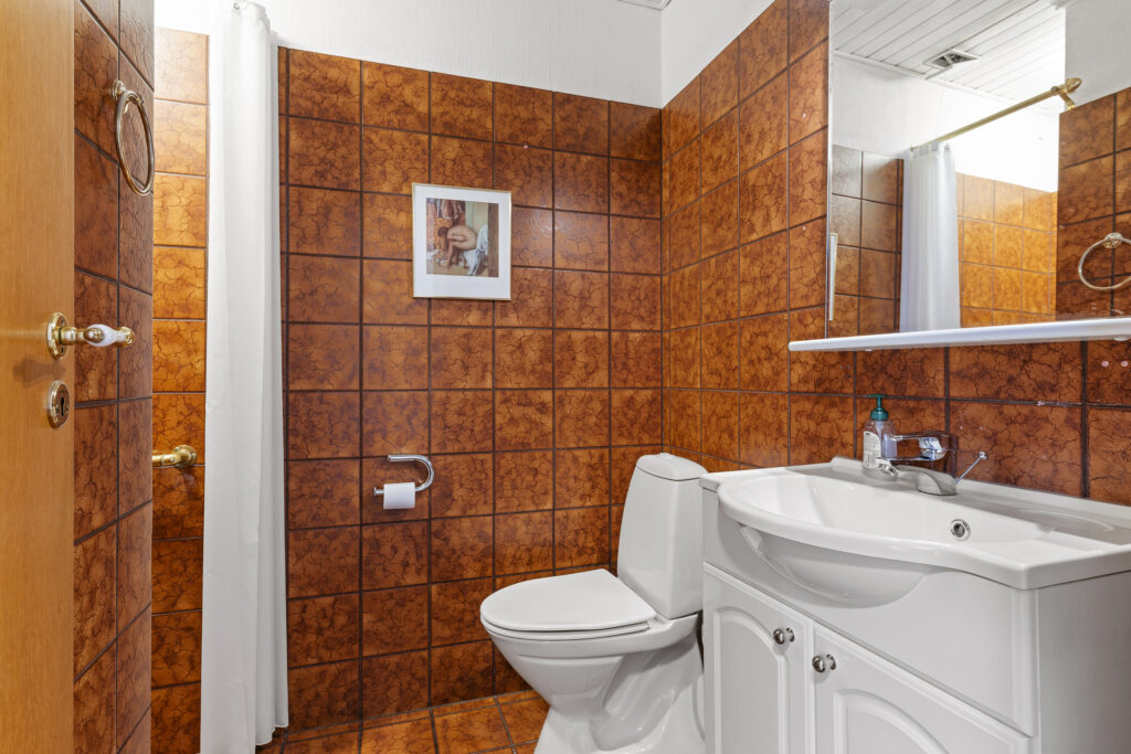 To badeværelser med klassiske materialer i rolige nuancer letter familiens morgenlogistik, mens et praktisk bryggers – med egen udgang – gør hverdagens ind- og udgang enkel. Indbyggede skabe sikrer gode opbevaringsmuligheder, så boligen altid fremstår ryddelig.