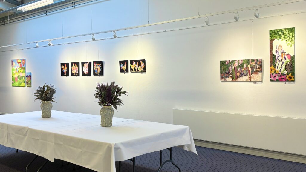 “Vi har mange forskellige slags udstillinger. Både med forskellige kunstnere, men så har vi også nogle gange vores egen udstilling ‘8450’, hvor alle medlemmerne i kunstforeningen skal have lov til at udstille deres værker. Og af og til får billedskolen også lov til at låne Galleriet til at vise nogle af deres ting frem,” fortsætter Elisa.